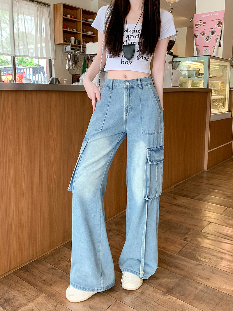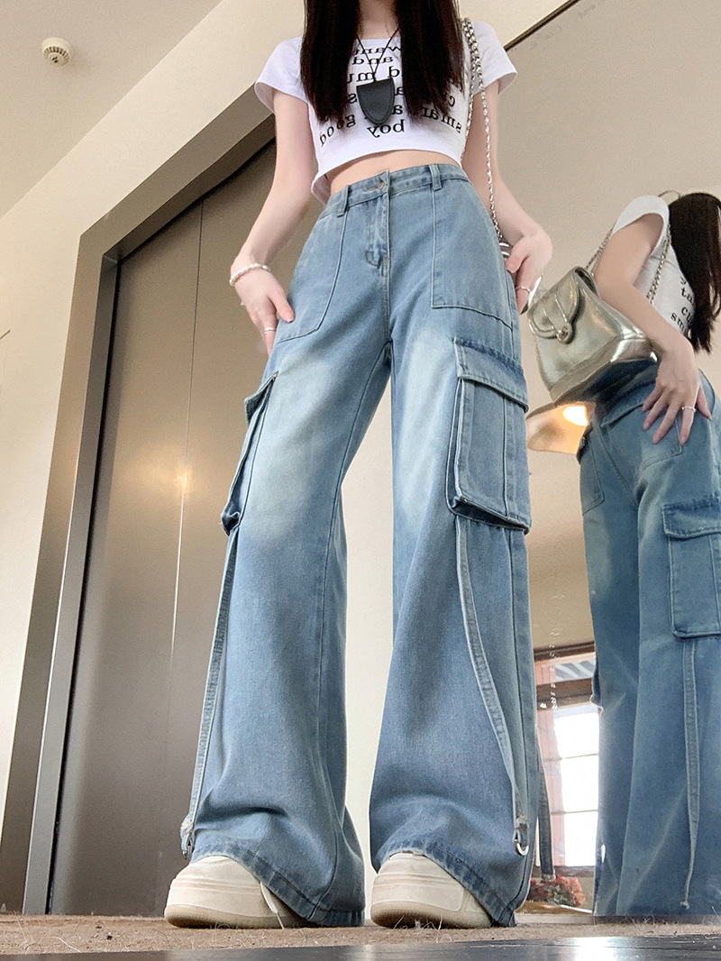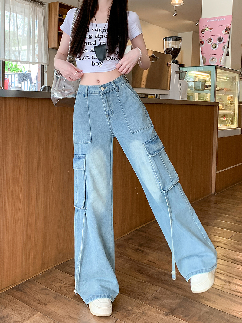 Figure-flattering Straight-leg Floor-length Pants With Large Pocketsversatile And Easy To Style