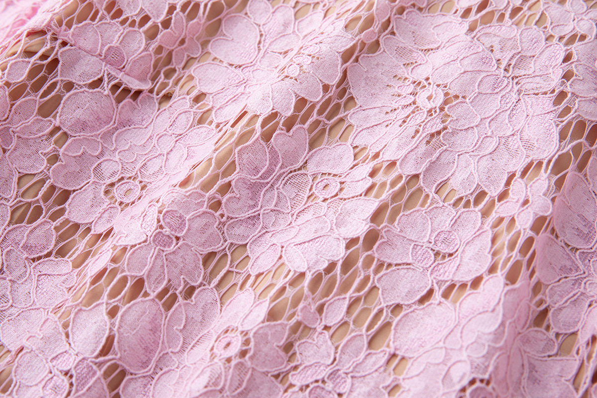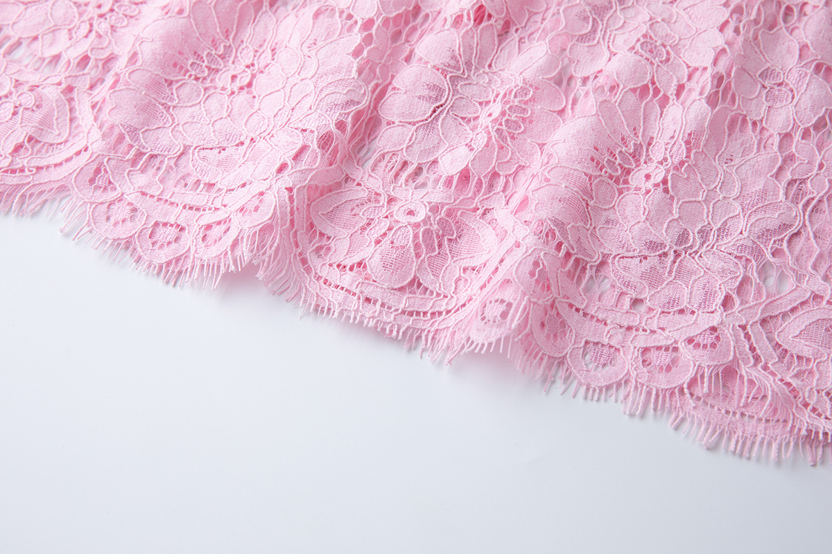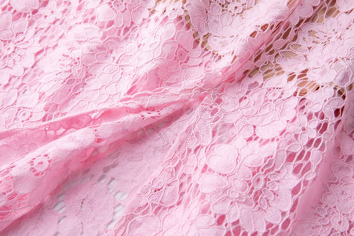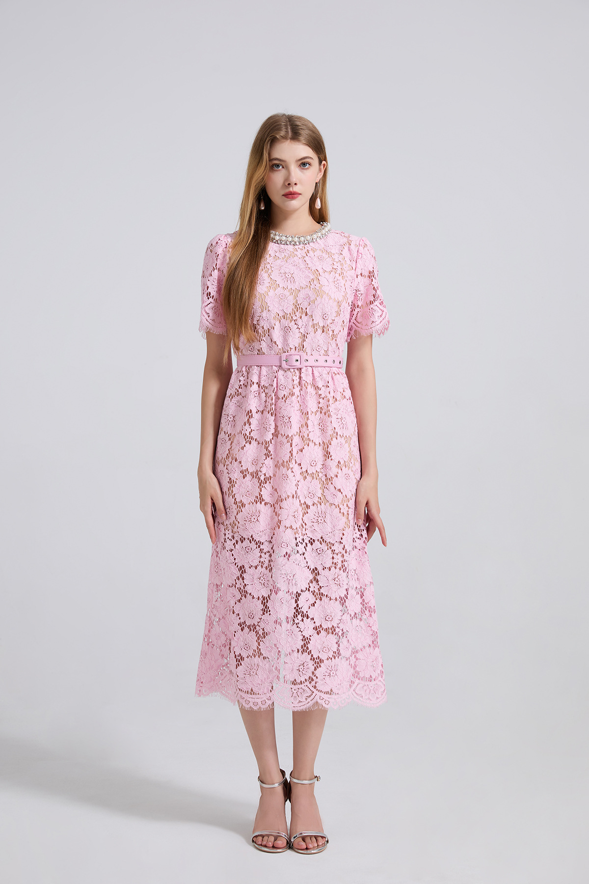 Lace Crew-Neck Beaded High-Waisted Defined-Waistline Dress
