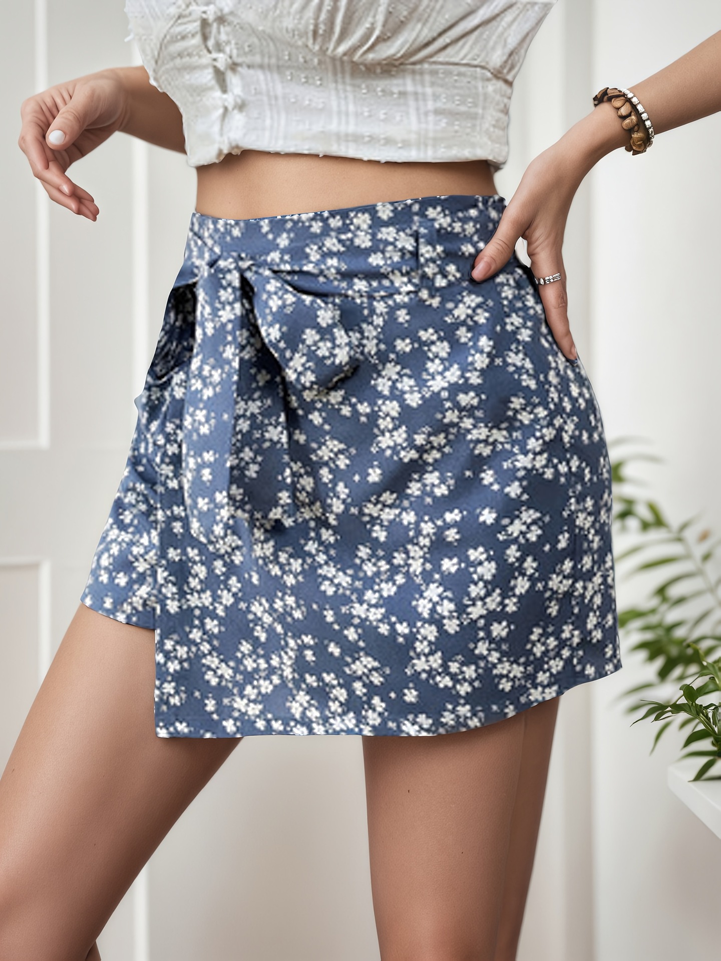SpringSummer Floral Lace-Up High-Waisted Shorts