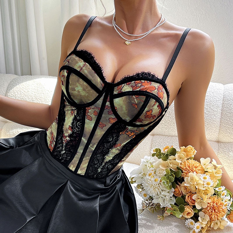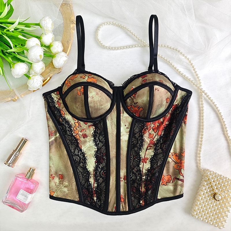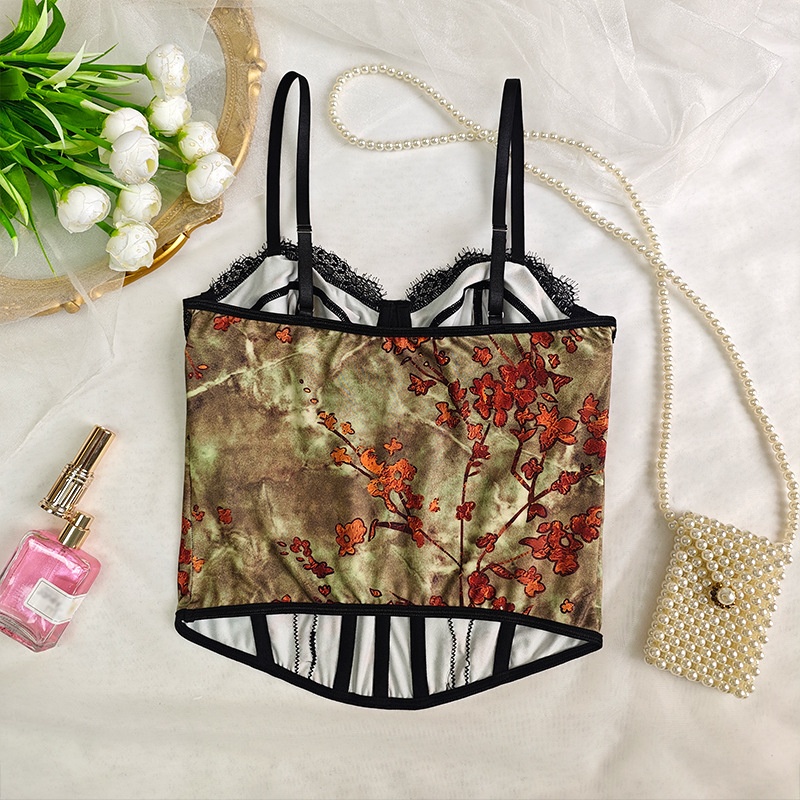 Strappy Underwire Sexy Hot Girl Backless Vest Top Corset Wrap Bust Fishbone Diamond Strap Tank Top