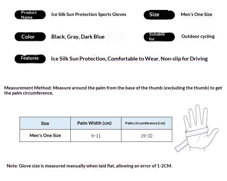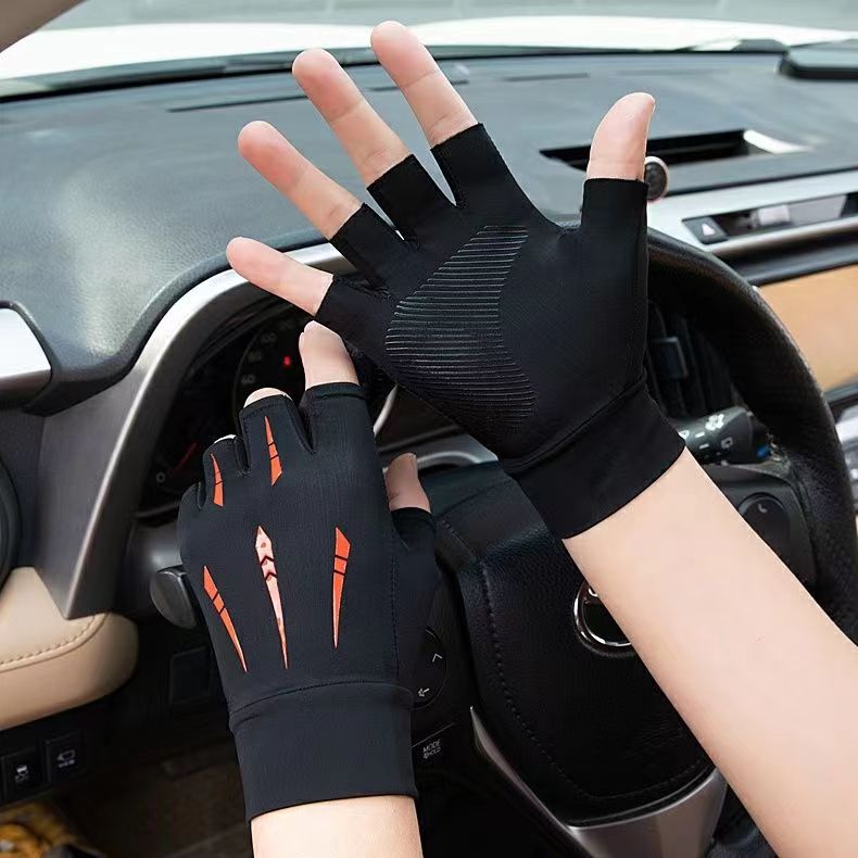 Summer Outdoor Sports Half-finger Gloves Made From Ice Silk With A Non-slip Grip