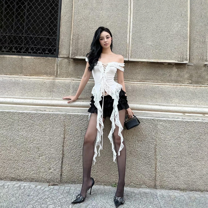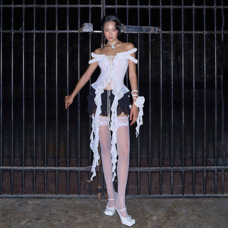 Womens Fashionable Sexy Slim-Fit Cutout Midriff-Exposed T-Shirt