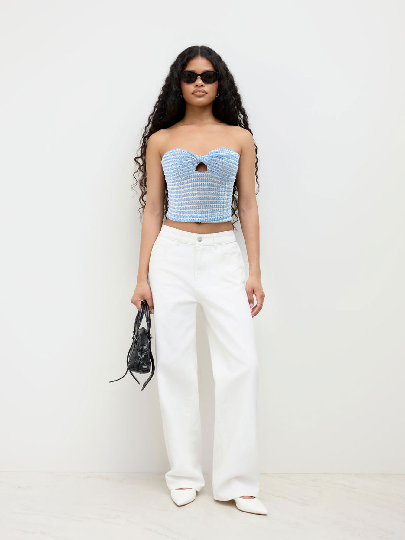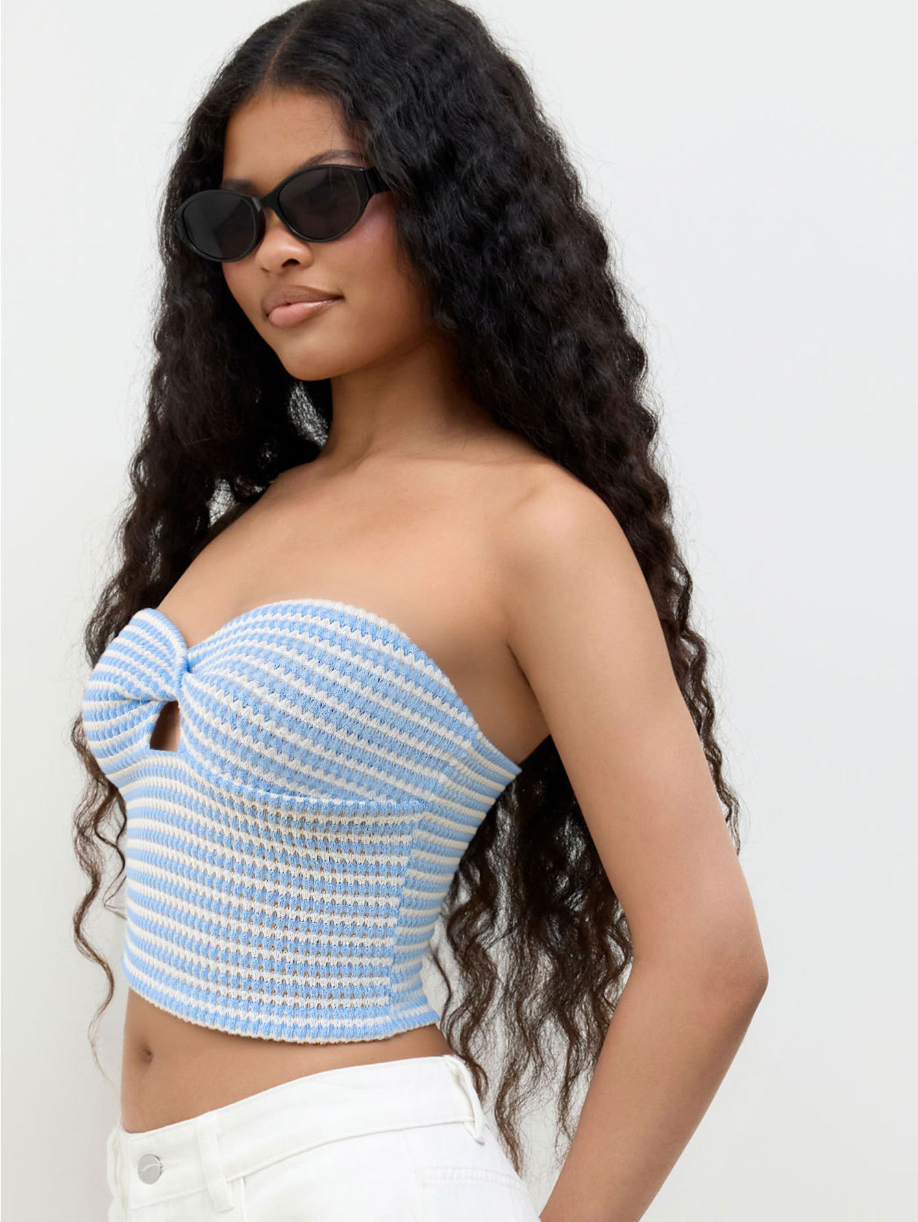 Womens Knot-Detail Hollowed-Out Tube Top With Striped Color-Block Design