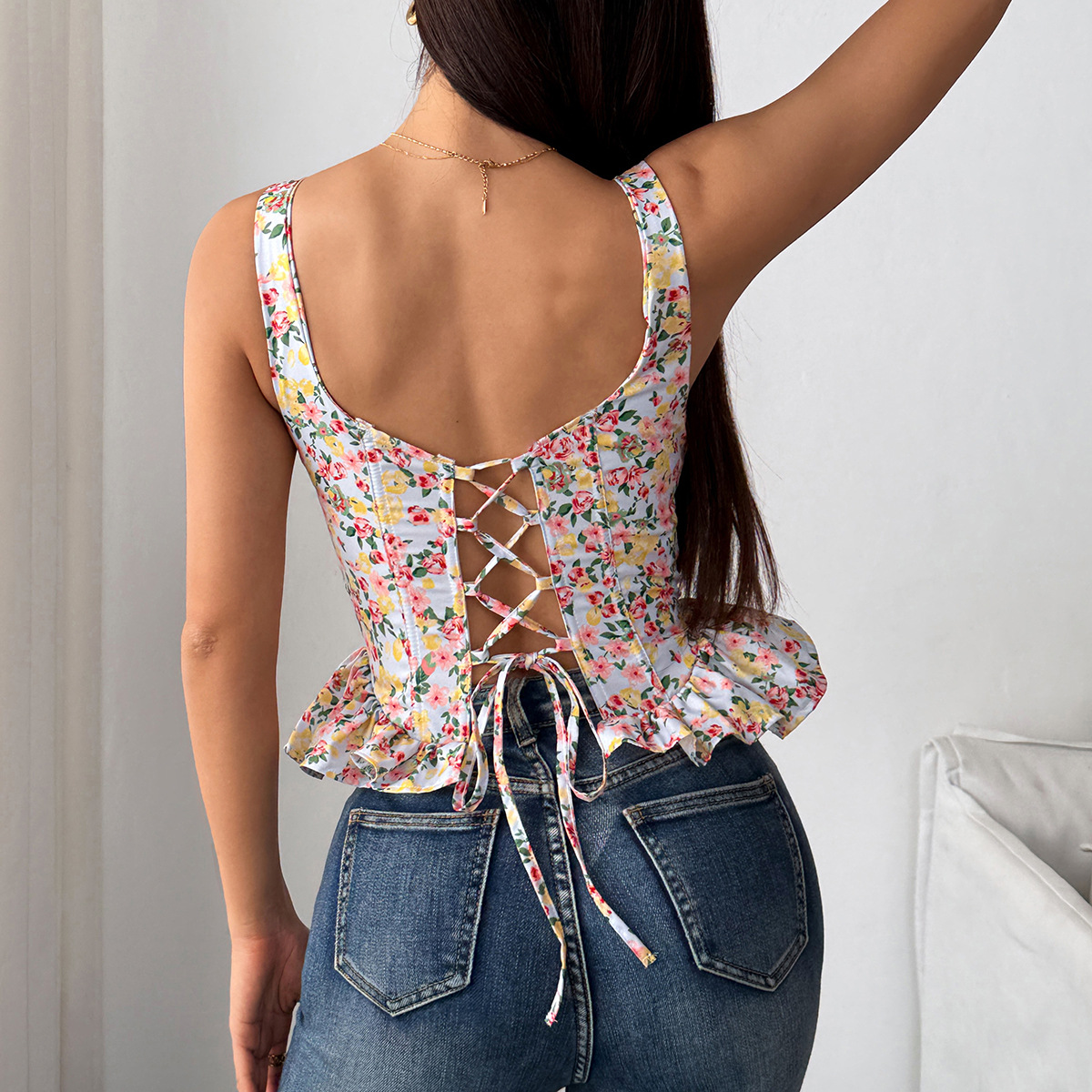 Women's Lace-up Adjustable Waist Ruffle Camisole